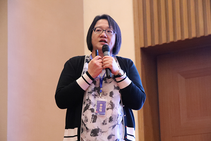 台湾纺织工程学会秘书长楼静文教授做《智能穿戴纺织品之功能性导电复合纱线及其织物制备设计技术》项目报告